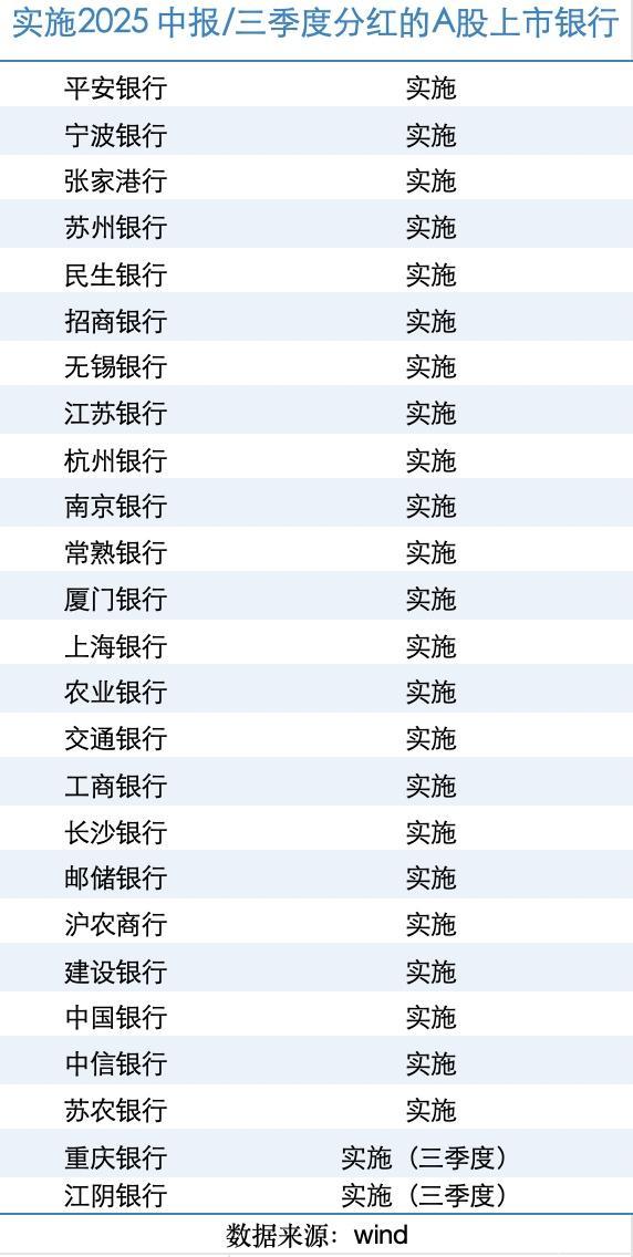 截至1月13日,已经实施2025年中期分红(或三季度分红)的银行已经达25家,占42家A股上市银行的一半以上。