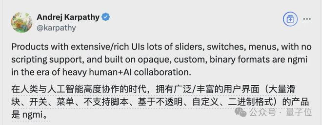 Karpathy的这番发言,并不意味着要消灭图形界面,但想要适应AgenticAI时代新的交互范式,开发者就必须在GUI之外提供新的交互接口。